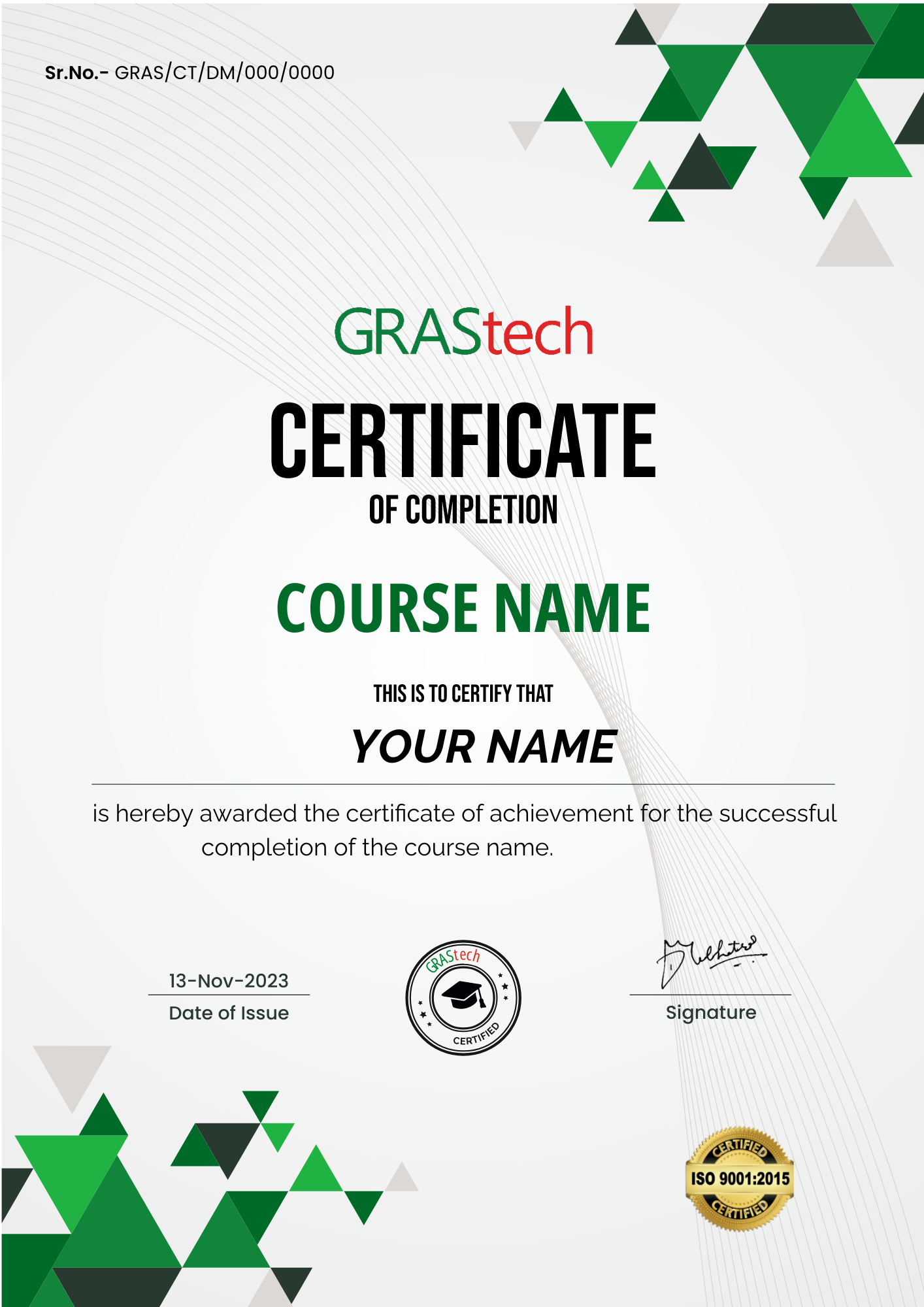 The Globally Recognized Certificate Program of Summer Training Internship in Bangalore offered by GRAStech represents more than just completion of a course. It validates that the learner has undergone structured, hands-on training and successfully worked on real-time projects aligned with current industry practices.